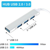4-портовый USB-хаб в компактном алюминиевом корпусе, удобен в использовании с ноутбуком, планшетом и смартфоном.