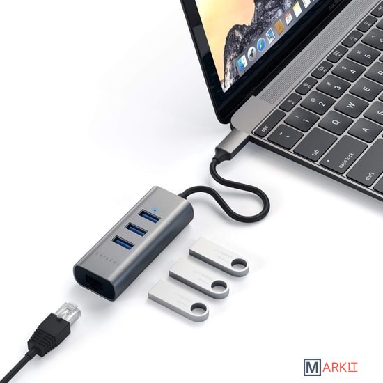 Satechi Type-C 2-in-1 USB 3.0 Aluminum 3 Port Hub and Ethernet Port представляет собой высокоскоростное сетевое решение для пользователей ноутбуков или настольных компьютеров. Он позволяет подключаться напрямую к сети через USB-порт.