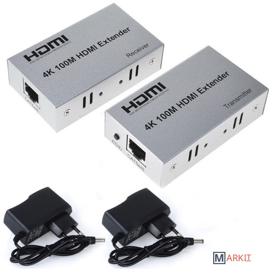 Активный удлинитель сигнала HDMI на 100м по витой паре RJ45 предназначен для передачи сигнала высокой четкости на расстояние до 100 метров вместо кабеля HDMI. Передача сигнала осуществляется по одному кабелю Cat-5e или Cat-6 (рекомендуется). Для получения высококачественного видео необходим качественный сетевой кабель Cat-6, от этого напрямую зависит дальность передачи сигнала. Передаваемый сигнал высокой четкости без искажения и потери качества, максимально поддерживаемое разрешение UltraHD 3840х2160 30Гц