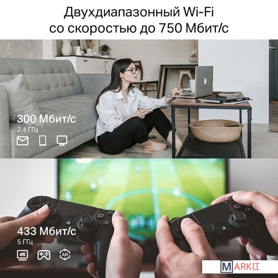 Скорость беспроводной связи 733 Mbps  (300 Mbps при 2.4 ГГц + 433 Mbps при 5 ГГц)