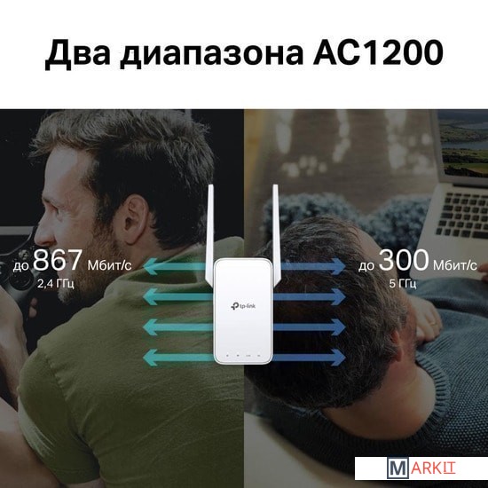 Скорость беспроводной связи 1167 Mbps  (300 Mbps при 2.4 ГГц + 867 Mbps при 5 ГГц)