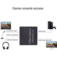 Устройство видеозахвата предназначено для захвата, записи и передачи видео и аудио HDMI на ноутбук, ПК, смартфон и т.п. Имеет стерео выход AUX jack 3,5mm и вход для микрофона.Характеристики:– Поддержка максимального входного разрешения до 4К– Поддержка максимального выходного разрешения до 1080P– При использовании стандартного кабеля AWG26 входное расстояние передачи составляет до 15 метров (разрешение 1080P и ниже)– Поддержка 8/10/12 бит глубокий цвет– Поддержка большинство программ сбора данных, таких как VLC, OBS, Amcap и т. д.– Совместим с Windows, Android и MaOS– Соответствует стандартам USB Video и UVC, UAC USB Audio– Максимальный рабочий ток: 0,7 А / 5 В постоянного тока– Диапазон рабочих температур: от -10 ℃ до +55 ℃– Поддержка аудио формата L-PCM