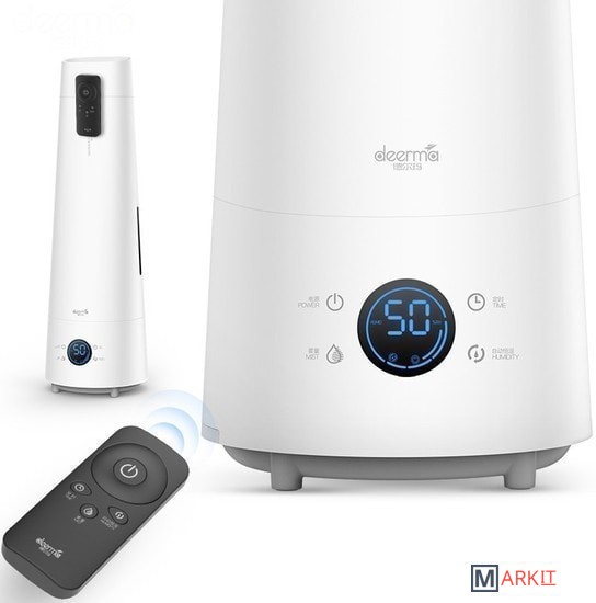 С октября 2021 года модель выпускается без функции Ароматизации.Увлажнитель воздуха от компании Deerma оснащен LED-дисплеем, на котором отображается полезная информация в режиме реального времени. Для управления на корпусе располагаются сенсорные клавиши: включения, автоматической поддержки влажности, регулировки интенсивности и таймера (до 12 часов).Также в комплекте имеется пульт дистанционного управления. Чтобы он не потерялся, предусмотрено магнитное крепление на самом увлажнителе Deerma.