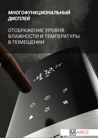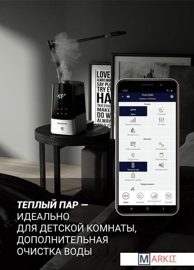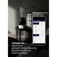 Мощность увлажнения: 30 Вт.Мощность нагрева: 80 Вт.Функция Wi-Fi: дистанционное управление через мобильное приложение IQ Home.Фильтр с ионообменной смолой для эффективной очистки воды от примесей.Функция «теплый пар» – идеально для детской комнаты.Возможность использования аромамасел.