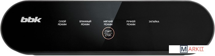| Режимы | сухие продукты, влажные продукты, щадящий (soft vacuum), запаивание без вакуума, мгновенная остановка |