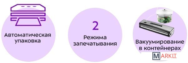 Создаваемое разрежение (максимум): 0.6 бар.Длина шнура: 1.2 м.В комплекте:- резак;- шланг для откачки воздуха;- 5 пакетов для вакуумирования (22x30 см).
