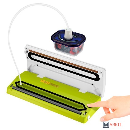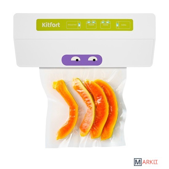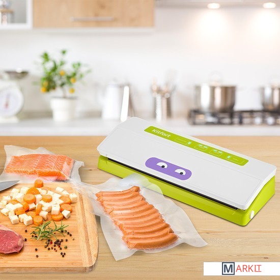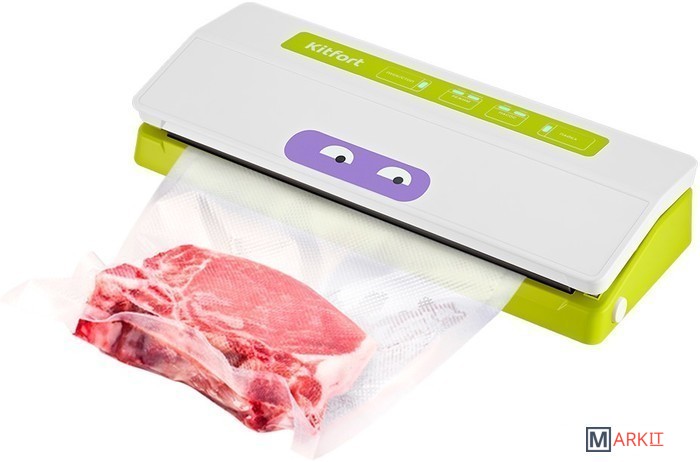 Вакууматор — устройство для вакуумной упаковки продуктов. Вакуумирование позволяет защитить от пыли, грязи, сохранить аромат и продлить сроки годности пищевых продуктов. Такой метод хранения уменьшает риск развития бактерий, которые появляются благодаря взаимодействию пищи с воздухом. Удаление воздуха из пакета гарантирует замедление процессов брожения, окисления и испарения, позволяя сохранить приятный внешний вид и качество самых разных продуктов питания.Вакууматор очень прост в использовании. Чтобы провести запаковку продукта, необходимо поместить его в специальный пакет, предназначенный для вакуумирования. Открытый край пакета укладывается в вакуумную камеру. После чего нужно закрыть крышку вакууматора и включить упаковку в автоматическом режиме. Вакууматор начинает выкачивать из пакета воздух. В результате образования вакуума пакет плотно обжимает содержимое. Как только воздух удален, начинается пайка открытой стороны пакета. В результате воздух уже не сможет проникнуть внутрь.Вакуумирование ускоряет засолку, маринование и мочение. В вакууме процесс обработки продуктов такими способами значительно ускоряется.Метод вакуумирования применяют не только в кулинарии, но и в других областях. Для туристических и бытовых нужд в вакуумный пакет можно поместить документы, деньги, спички, лекарства, мобильный телефон, карту, компас, чай и другие предметы. Охотники могут запаковать порох и патроны. Это защитит их от сырости и попадания воды. Серебряные украшения, коллекционные монеты, значки, упакованные таким способом, не будут тускнеть со временем.Вакуумная упаковка продуктов и вещей помогает значительно сэкономить место как в холодильнике, чемодане, так и по всей квартире. Пакеты с откачанным воздухом и сжатым содержимым занимают гораздо меньше пространства.В KT-1523 есть режимы для вакуумирования сухих, влажных или мягких продуктов. Прорезиненные ножки делают устройство более устойчивым и не дают скользить по столу во время работы.