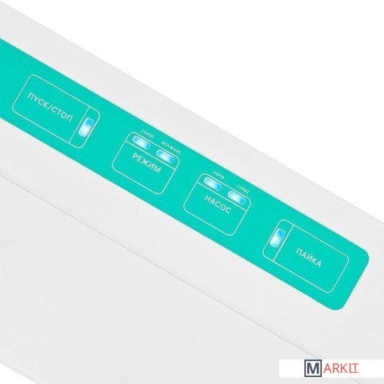 Режимы сухие продукты, влажные продукты, запаивание без вакуума, мгновенная остановка