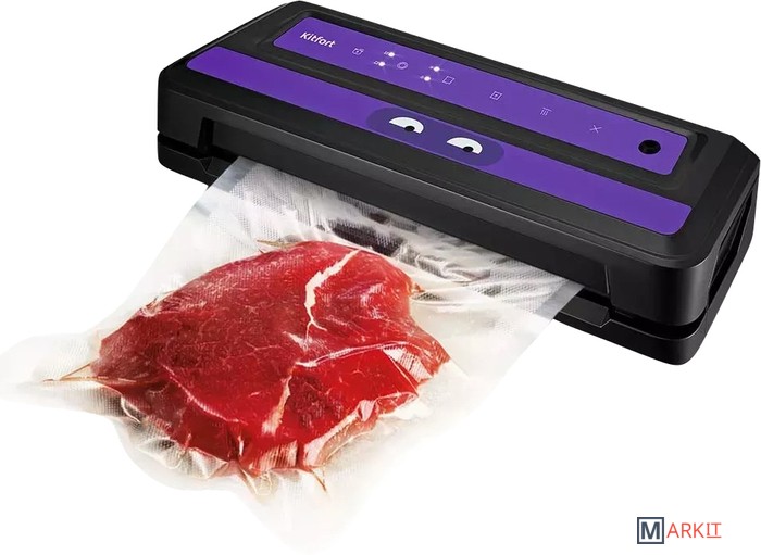 Вакууматор Kitfort КТ-1531 обеспечит долгие сроки хранения ваших любимых продуктов. Продукты, упакованные под вакуумом, сохраняют дольше аппетитный вид, вкус и полезные свойства, а портятся существенно дольше по сравнению с обычными условиями хранения.Открытый край пакета укладывается под крышку прибора, и после выбора режима, вакууматор выкачает из него воздух. В результате образования вакуума пакет плотно обжимает содержимое. Как только воздух удалён, начинается запечатка открытой стороны пакета.«Контейнер» – откачивание воздуха из контейнеров; «давление» - выбор нормального и низкого давления; «режим» - выбор режима запечатывания для сухих или влажных продуктов; «авто» - автоматическая упаковка; «запечатывание» - запечатывание шва пакета.У КТ-1531 есть режимы для вакуумирования сухих, влажных и мягких продуктов с различным временем запечатывания. Влажные продукты могут намочить край пакета, поэтому время запечатывания требуется увеличить.У КТ-1531 можно активировать режим откачки воздуха из контейнеров. Вакуумирование проиходит при помощи шланга, вставленного в фитинг вакууматора одним концом, а другим в крышку контейнера. Вы можете дополнительно приобрести набор контейнеров КТ-1500-10.С нашей техникой очень легко подружиться, потому что она не только лёгкая и функциональная, но и будто живая с весёлыми глазами. Никого не оставит равнодушным. В любой момент вы можете отклеить этот стикер без вреда для поверхности.Создаваемое разрежение (максимум): 0.8 бар.Ширина шва: 2.5 мм.Уровень шума: ≤ 80 дБ.Длина шнура: 0.9 м.