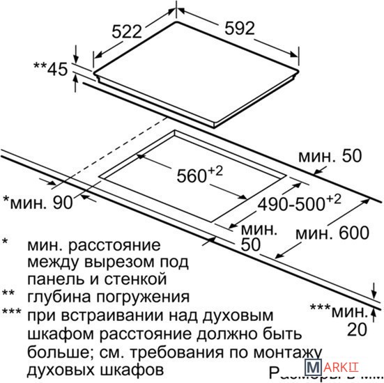 | Размеры ниши для встраивания | |