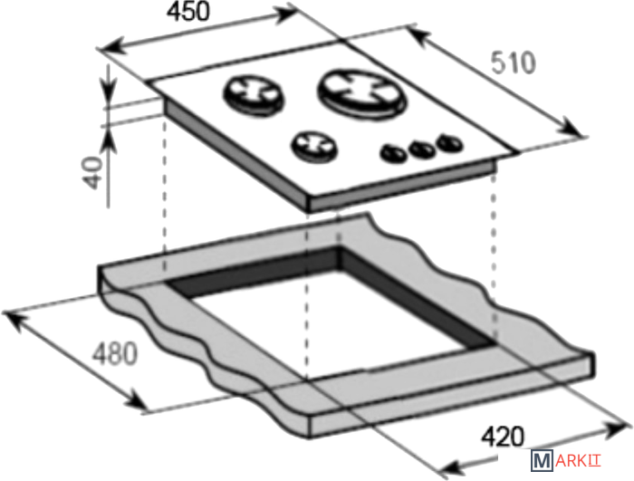 | Трёхуровневые конфорки | ✘ |