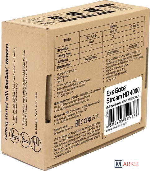 Markit » Веб-камеры » Веб-камера ExeGate Stream HD 4000 4K UHD T-Tripod