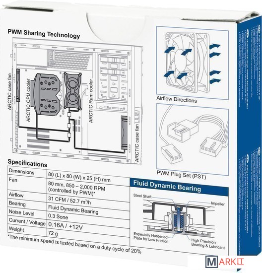Markit » Системы охлаждения » Вентилятор для корпуса Arctic F8 PWM PST AFACO-080P0-GBA01