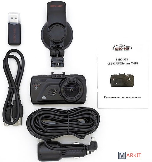 - Видеорегистратор SHO-ME A12-GPS/ГЛОНАСС WIFI- Провод питания для подключения в гнездо прикуривателя- Провод USB- Крепление с присоской- Руководство пользователя