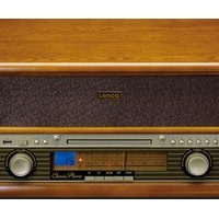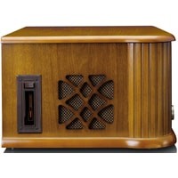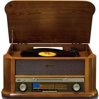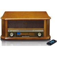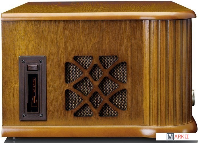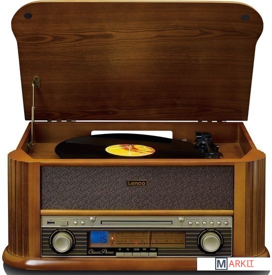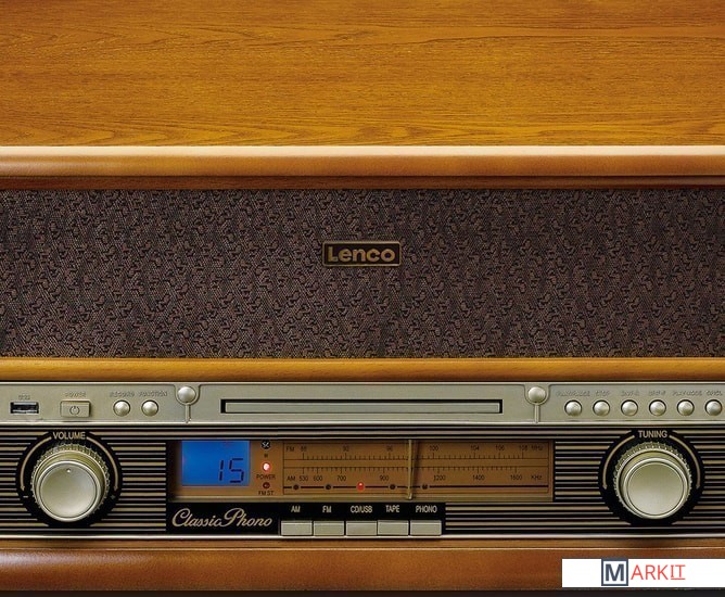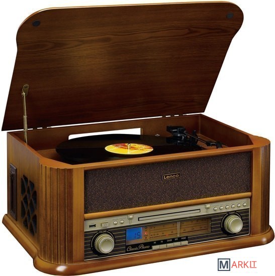 Lenco TCD-2550 выполнено в дизайне популярных в середине прошлого века радиол и станет отличным дополнением интерьера в винтажном стиле. Под поднимающейся верхней крышкой Lenco TCD-2550 находится проигрыватель винила — именно так было сделано и практически во всех классических радиолах. Имеется возможность воспроизведения дисков на трех скоростях (33, 45 или 78 об/мин) с пластинок любых форматов. Проигрыватель оснащен легким тонармом с предустановленным звукоснимателем и очень прост в использовании. В данной модели предусмотрен автостоп, при срабатывании которого тонарм возвращается в исходную позицию. Еще одним источником сигнала в Lenco TCD-2550 является CD-проигрыватель. Коллекции CD имеются в распоряжении многих меломанов, поэтому возможность их прослушивания на этой системе наверняка будет востребована. Предусмотрена возможность проигрывания аудиокассет.В системе Lenco TCD-2550 имеется и встроенный FM-тюнер, что также соответствует оснащению классической радиолы. Для настройки на радиостанции используется традиционная шкала с верньером, что придает модели дополнительный шик. Вся необходимая информация выводится на небольшой ЖК-дисплей, который очень удачно вписан во фронтальную панель. Современные технологии в Lenco TCD-2550 представлены функцией воспроизведения музыкальных файлов с USB-накопителей. Более того, в данной модели предусмотрена и возможность простой записи на подключенную флешку музыки с пластинок для прослушивания на других цифровых устройствах. Система комплектуется полнофункциональным пультом ДУ.По обеим сторонам корпуса Lenco TCD-2550 расположены динамики, которые подключены к усилителю мощностью 2 х 4,5 Вт.