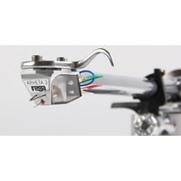 На фото проигрыватель изображен с картриджем Apheta 3.Применение пассика, изготовленного из специальной резины по запатентованной технологии, обеспечило отличную развязку диска, а его вращение стало еще более стабильным и точным, полностью свободным от вибраций. Кроме того, проигрыватель оснащен тонармом RB3000, с облегченным и очень точно работающим механизмом компенсации скатывающей силы. В проигрывателе Rega Planar 10, впервые в истории данной компании, верхняя плита изготовлена из керамики, а нижняя из фенольной смолы, за счет чего удалось получить исключительную жесткость всей конструкции, а также наилучшую механическую развязку между опорным диском и тонармом. В то же время само шасси изготовлено из полиуретана Tancast 8, применяемого в аэрокосмической индустрии, и обладает очень малым весом. Проигрыватель комплектуется новым фирменным электронным стабилизатором скорости вращения диска на базе DSP, выполненном в металлическом корпусе.
