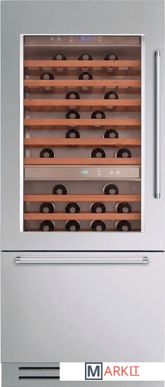 Винный шкаф с классом энергоэффективности А+ на 81 бутылку, шириной 90 см, оснащен светодиодной подсветкой, двумя температурными зонами, трехкамерным стеклопакетом, который создает защиту от УФ-лучей, мультитемпературным выдвижным ящиком, отделением Preserve & Age Red Wine, а также системой защиты от вибрации. Эта модель также характеризуется режимом «отпуск» и функцией «быстрое охлаждение».