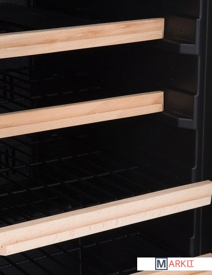 Тип охлаждения - смешанный.2 решетчатые полки с деревянным фасадом и 2 полки из металлической проволоки. Эти полуполки, вставленные в задней части погреба, позволяют хранить 3 бутылки в вертикальном положении перед ними.Защита от УФ-излучения.Три стопора для системы вакуумного насоса.Четыре регулируемые ножки.Внутреннее светодиодное освещение.Отличное распределение холодного воздуха.Антивибрационная система.