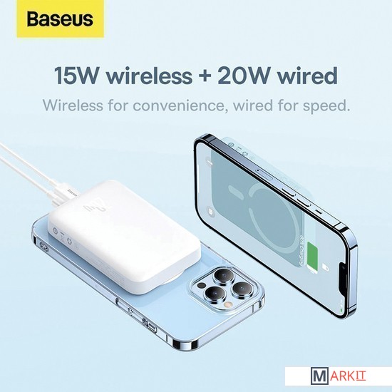 Markit » Портативные зарядные устройства » Внешний аккумулятор Baseus Magnetic Mini Wireless Fast Charge Power Bank 10000mAh 20W (белый)