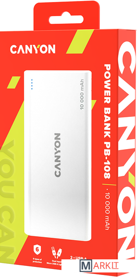 Markit » Портативные зарядные устройства » Внешний аккумулятор Canyon PB-108 10000mAh (белый)