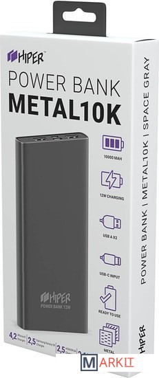 Markit » Портативные зарядные устройства » Внешний аккумулятор Hiper Metal10K (серый)