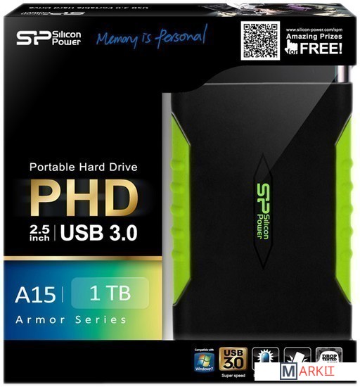 Как и другие представители серии, характеризуется защищенным исполнением: прорезиненный корпус сертифицирован на соответствие американскому военному стандарту MIL-STD-810F, условием которого является падение с высоты 122 см без последствий.Подключение Armor A15 к компьютеру осуществляется посредством проводного интерфейса USB 3.0. Изделие поддерживает функцию быстрого резервного копирования — для ее активации предусмотрена большая кнопка на лицевой стороне корпуса.