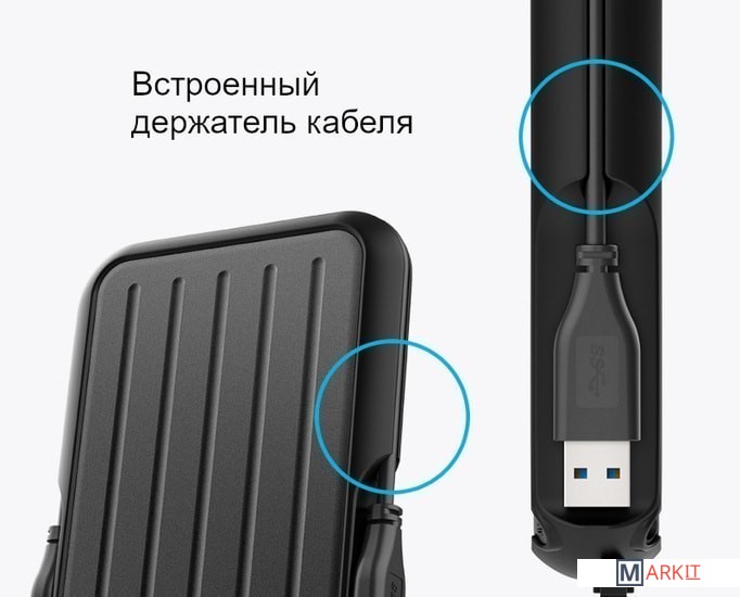 Armor A66 - это настоящий «внедорожник» среди портативных накопителей, который легко справится с ударами, падениями, попаданием под ливень в отпуске и бытовой пылью в офисе. Корпус устройства защищён мягким резиновым бампером, который помогает поглотить силу удара при случайном падении и защищён от попадания брызг и капель воды со стандартом водонепроницаемости IPX4, что помогает сохранить накопитель в целости и сохранности.