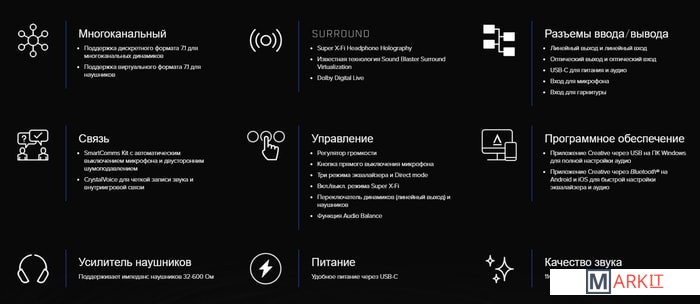 Технологии объемного звука Creative Super X-Fi, Dolby Digital Live, PCM, Sound Blasterx Acoustic Engine