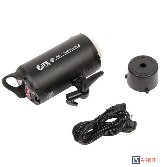 Моноблок Falcon Eyes Phantom 600 HSSПровод питания 5 мПластиковый защитный колпак лампыРуководство по эксплуатации и гарантийный талон