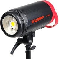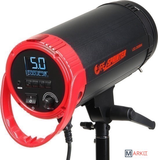 Импульсный моноблок, мощность 200 Дж, цветовая температура 5600±200 К, время перезарядки 0.05…0.4 сек. Светодиодная лампа пилотного света 30 Вт. Возможность беспроводного управление (встроенный приемник, радиосинхронизатор приобретается отдельно). Алюминиевый корпус. Синхронизация по кабелю, по оптическому каналу.