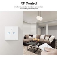 SONOFF T2EU2C-RF - это 2-канальный радиовыключатель, работающий от батареек. Его можно подключить к мосту Sonoff RF Bridge для управления другими реле через сценарии, либо напрямую связать с одним из выключателей Sonoff серии T1, T2, T3 или T4. Именно с добавлением беспроводного выключателя к проводному можно реализовать проходной режим для лестницы! Сенсорная панель имеет пластиковую окантовку, защищающую выключатель от случайных боковых ударов.Подсветка светонакопительная - светится только несколько часов после отключения света в помещении с выключателем.Выключатель легко программируется по частоте 433,92 МГц. Может управлять напрямую релейными модулями RFR2, RFR3, 4Ch Pro R3, T1, T2, T3.Внимание: Обратите внимание на то, что выключатель не комплектуется источником питания. Для работы необходимы батарейки - 2 штуки «CR2032 (3V)».