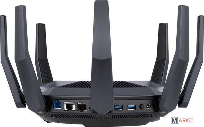 Восемь портов Gigabit Ethernet делают модель RT-AX89X идеальным выбором для тех пользователей, у кого есть несколько устройств с проводным подключением: компьютеры, сетевые накопители и т.д. Для организации LAN-вечеринки RT-AX89X также будет отличным вариантом.RT-AX89X оборудован двумя портами 10 Gigabit Ethernet (один – Base-T, второй – SFP+), таким образом он поддерживает подключение на скорости до 10 Гбит/с как через оптоволоконный, так и через медный кабель. Это позволяет использовать максимально быстрые каналы подключения к ISP, а также реализовать высокоскоростное подключение ПК к NAS в собственной локальной сети стандарта 10G.RT-AX89X включает в себя систему информационной безопасности AiProtection Pro на базе разработок компании Trend Micro, которая обеспечивает защиту от интернет-угроз для всех подключенных к нему цифровых устройств. С помощью функции родительского контроля можно указать расписание доступа в интернет. Также имеется возможность полностью заблокировать нежелательные веб-сайты и мобильные приложения.
