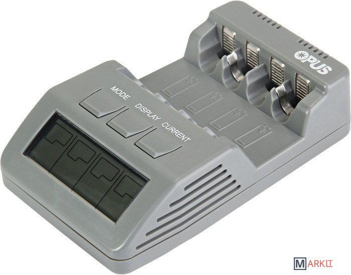 Данное устройство позволяет заряжать, разряжать, определять состояние и восстанавливать независимо друг от друга от одного до четырех АА или ААА аккумуляторов.Особенности- регулируемый ток заряда: 1-4 аккумулятора: 200, 300, 400, 500, 700mA 1-2 аккумулятора (зарядные отсеки 1 и 4): до 1000mA- регулируемый ток разряда: 100, 200, 300, 400, 500mA- 4 независимых канала. Можно заряжать от 1 до 4 аккумуляторов- легкое управление тремя кнопками- одновременная работа с NiCd / NiMH аккумуляторами типоразмеров АА / ААА- информативный ЖК дисплей с отключаемой подсветкой отображает текущие данные (ток зарядки,время, напряжение, накопленная емкость) отдельно по каждому аккумулятору- автоматическое определение процесса окончания зарядки по падению напряжения (-dV)- определение неисправных аккумуляторов- тестирование внутреннего сопротивления аккумулятора- программа "восстановление" для активизации старых или долго хранящихся аккумуляторов- программа "тест" для определения реальной емкости аккумулятора- отображение на LCD-дисплее информации об установившемся напряжении (V), времени зарядки (чч),токе заряда (mA) и накопленной емкости (mAh или Ah)- контроль температуры аккумулятора с автоматическим отключением в случае перегрева (4термодатчика).- «капельный заряд» аккумуляторов: после того как аккумуляторы заряжены и оставлены в устройстве,их емкость будет автоматически поддерживаться на необходимом уровне.- источник питания – 12V. Можно использовать автомобильный прикуриватель как источник питания.