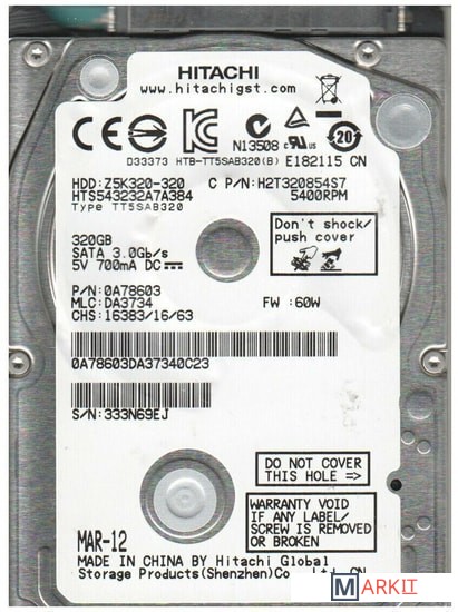 Markit » Жесткие диски » Жесткий диск Hitachi Travelstar Z5K320 320 ГБ HTS543232A7A384